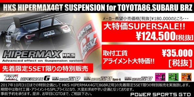 10月31日までの期間限定!!限定5SET限りの数量限定にて、HKS製車高調[HIPERMAX4GT]